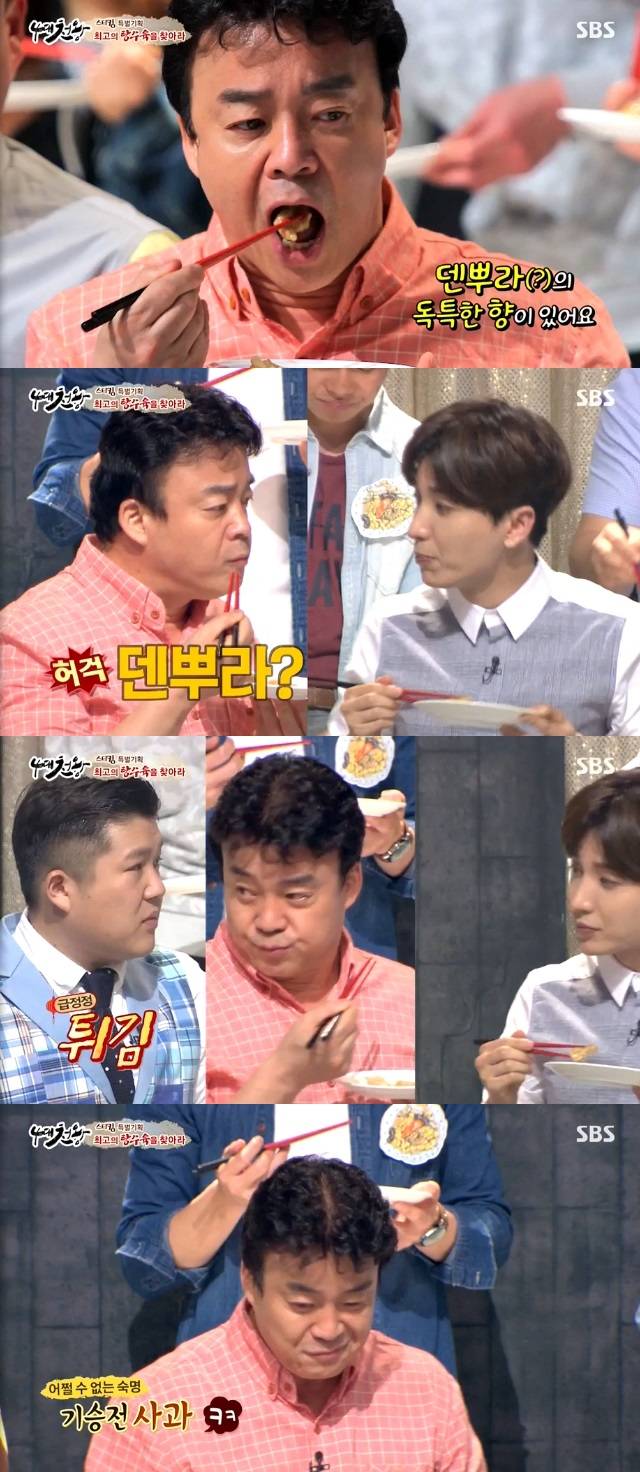 이 과정에서 백종원은 "이 탕수육은 덴뿌라의 독특한 향이 있다"고 말했고, 이를 놓치지 않은 조세호와 이특은 "덴뿌라?"라며 백종원에게 눈치를 줘 웃음을 자아냈다.