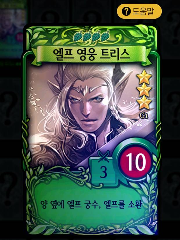 1레벨 기준으로 4개의 자원을 소모하는 이 카드의 공격력과 체력은 각각 3, 10. 여기에 동시에 양 옆에 엘프 궁수와 엘프가 소환되어 이 카드를 사용하는 이는 한 번에 3개의 전장을 점유해 상대를 압박한다.
