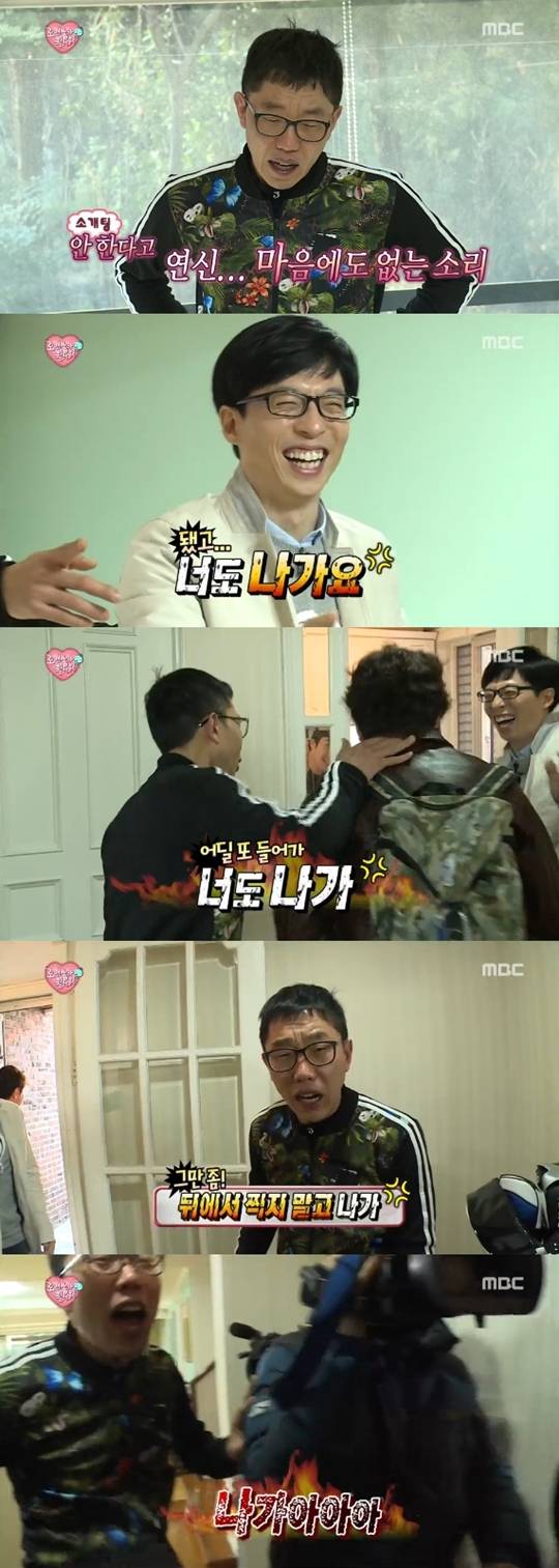 이어 김제동은 소개팅 제의에도 연신 짜증을 내며 이윽고 그들을 내쫓기에 이르렀다. 그러자 유재석은 "김제동이 진짜 화가 났다"고 말했다.
