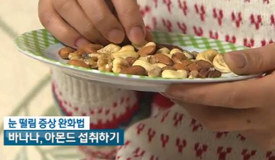 특히 마그네슘이 부족해지면 눈꺼풀이 경련을 한다. 신경계가 지속해서 흥분 상태에 놓이기 때문이다. 마그네슘이 많이 함유된 견과류, 정제되지 않은 곡물, 연어, 우유 등을 섭취해야 하는 게 좋다. 평소 과음을 자주 하거나 탄산음료를 많이 마시면 알코올이나 인산 성분이 마그네슘의 흡수를 방해하므로 이러한 습관을 고쳐야 한다.