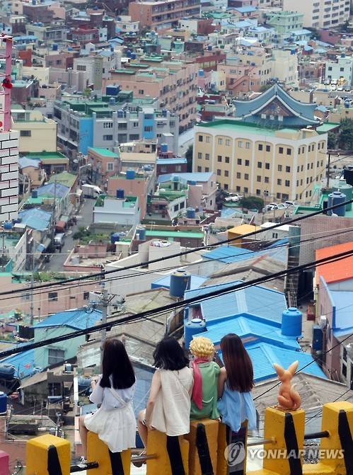(부산=연합뉴스) 차근호 기자 = 부산 근현대사의 흔적을 고스란히 담고 있는 사하구 감천문화마을이 관광명소로 자리 매김 하고 있다. 사진은 감천문화마을 내 어린왕자 포토존. 2015.7.2