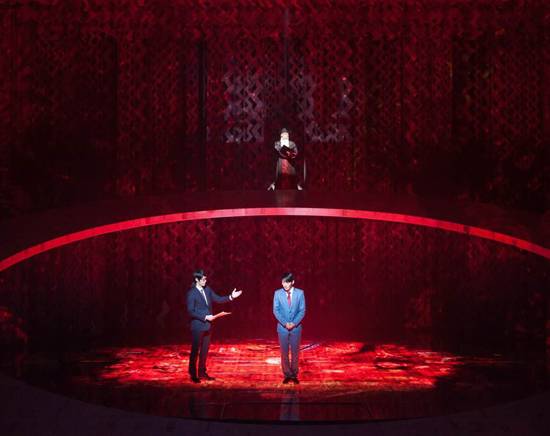 상상의 공간을 형상화 한 무대는 또 다른 언어로서 작품의 주제를 드러낸다. 객석을 향해 기운 거대한 바퀴 모양의 세트는 윤회를 상징한다. 바퀴의 한가운데는 7개의 심판이 이뤄지는 저승 중심부로, 비교적 좁은 이 공간은 리프트를 활용해 지옥행 지하철이나 저승 감옥 같은 다양한 공간을 만들어 낸다. 바닥에 깔린 발광다이오드(LED) 스크린과 화려한 조명이 빚어내는 미쟝센도 인상적이다.