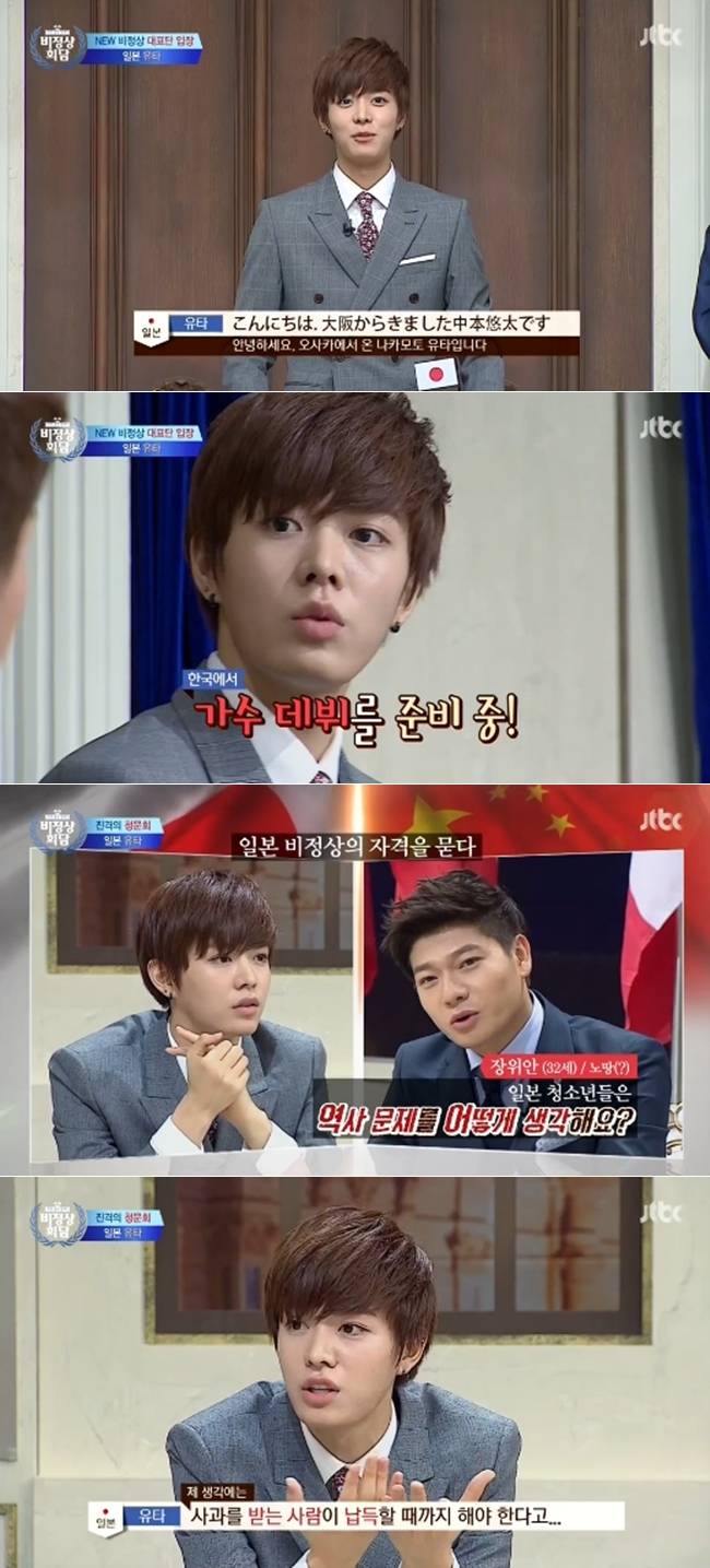 나카모토 유타는 7월6일 방송된 JTBC 예능프로그램 '비정상회담'에서 일본 대표로 새롭게 합류해 관심을 모았다.