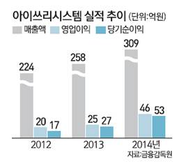 든든한 매출원인 군수사업도 꾸준히 성장시켜나간다. 지난해 매출액 309억원의 70%가 군수사업에서 나왔다. 아이쓰리시스템은 2006년 정부로부터 74억원의 연구개발비를 지원 받아 적외선 영상센서 기술을 개발한 후 방위산업체에 주로 해당 제품을 납품해왔다.