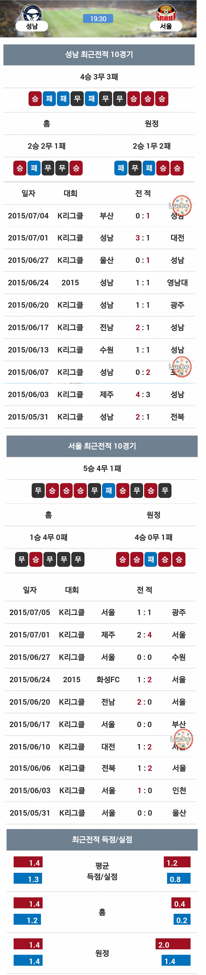 [인터스코어 인포그래픽] 성남FC와 FC서울의 최근 전적