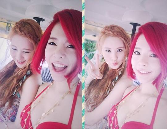 공개된 사진 속 써니는 머리색깔처럼 새빨간 비키니를 입고 서현과 함께 포즈를 취하고 있다. 서현은 카메라를 향해 귀엽게 브이 마크를 그렸고 써니는 트레이드 마크 눈웃음과 함께 환하게 웃고 있다. 특히 써니의 볼륨 몸매가 시선을 사로잡는다.