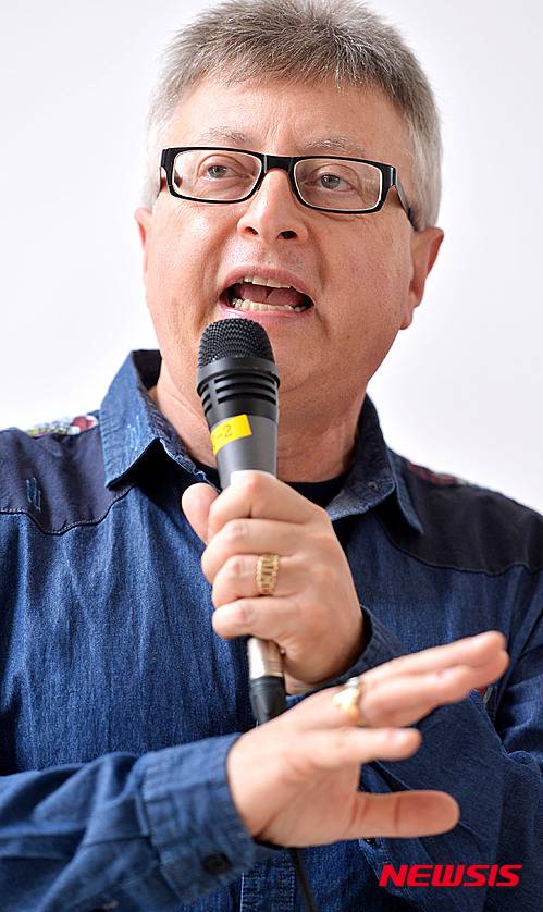 【서울=뉴시스】이영환 인턴기자 = '배트맨' 시리즈 전 작품을 제작총괄한 마이클 유슬란이 14일 오전 서울 대학로 홍대아트센터에서 기자간담회를 갖고 있다.