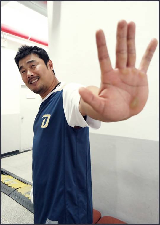 <팀 내 최고참인 이호준의 손바닥에는 언제나 굳은살이 박혀있습니다.시즌 내내 그의 꾸준함을 대변해주고 있습니다.사진=표권향 기자>
