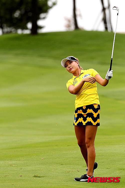 【서울=뉴시스】18일 인천 영종도에 위치한 스카이72 하늘코스에서 열린 "BMW 레이디스 챔피언십 2015(총상금:12억원, 우승상금 3억원+우승부상 BMW 뉴 X5)" 3라운드경기에서 이시온 프로가 1번 홀 세컨샷을 미스하며 클럽을 놓아버리고 있다. 2015.07.18. (사진 = BMW 그룹 코리아 제공)