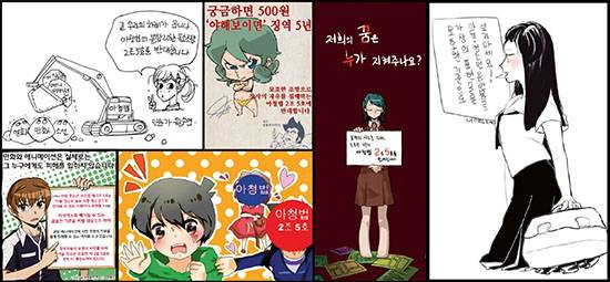 만화가들이 그린 탄원서. 이들은 아청법 제2조5항이 창작자의 상상력을 옥죄고 표현의 자유를 침해한다고 지적했다.
