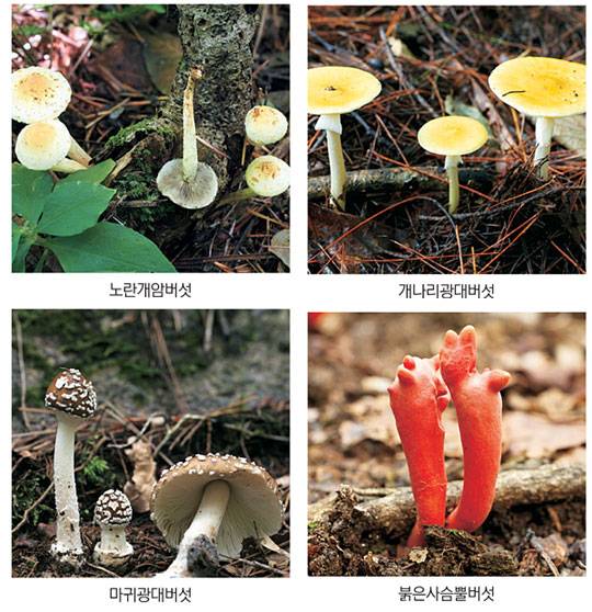 진하고 화려한 노란개암버섯·개나리광대버섯 '맹독성'