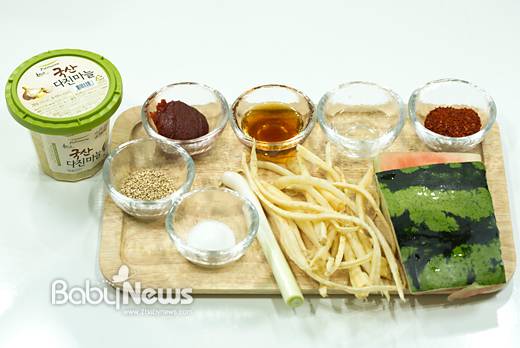 수박 도라지나물 무침에 필요한 재료. 이기태 기자 likitae@ibabynews.com ⓒ베이비뉴스 |