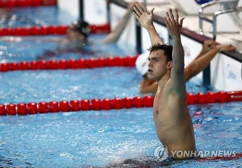 epa04871704 James Guy of Great Britain celebrates after winning the Men's 200m Freestyle final during the FINA Swimming World Championships at Kazan arena in Kazan, Russia, 04 August 2015. EPA/VALDRIN XHEMAJ