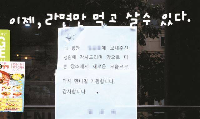 서울 홍대 앞 한 라면 전문점의 폐업안내문