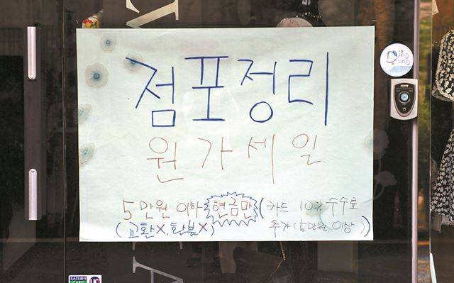 점포 정리 세일 안내문이 붙은 서울 홍대 앞의 한 의류매장.