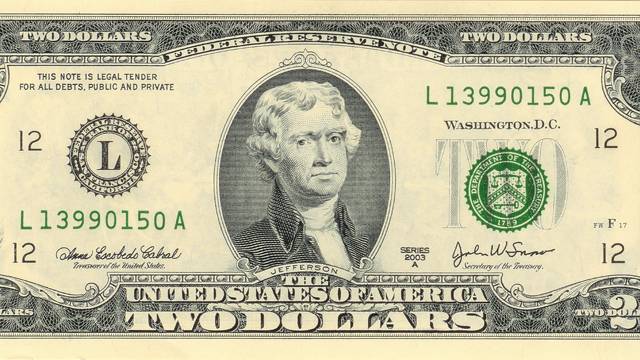▲ 지금은 미국에서 거의 쓰지 않는 2달러 지폐에 그려진 인물이 토마스 제퍼슨