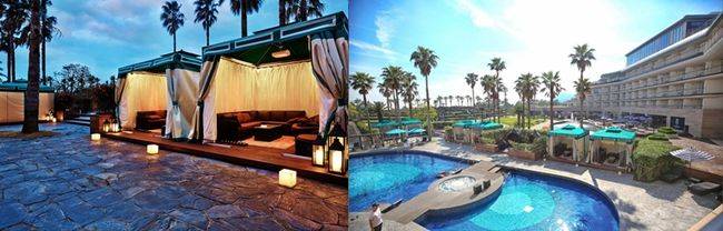 야자수로 둘러싸여 있어 이국적인 정취를 즐길 수 있는 야외 수영장 옆에 위치한 '럭셔리 가제보'는 티파니 블루와 모던 베이지 컬러를 이용하여 더욱 럭셔리한 분위기에서 여유로운 휴식을 즐길 수 있다.