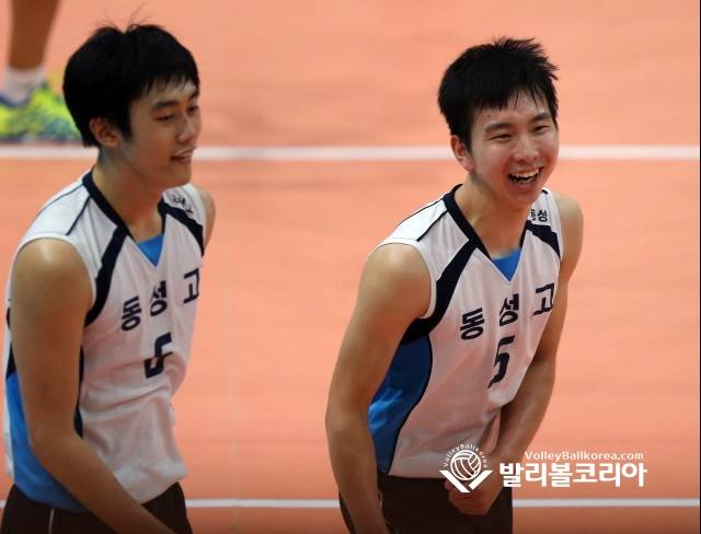 【발리볼코리아(화성)=김경수 기자】18일 경기도 화성시 송산중학교체육관에서 열린 2015 화성시장배 춘계 전국 남.녀 중.고 배구연맹전 남자고등부 송산고 vs 부산동선고 예선경기에서 부산동성고 정지원이 공격성공시키고 기뻐하고 있다.2015.09.18.
