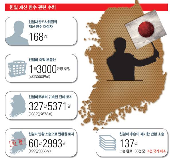 광복 이후 부적절한 역사의 청산은 지금도 제대로 이뤄지지 못하고 있다. 친일파로 알려진 이들이 기득권을 유지하며 재산을 축적하고, 각계각층에서 친일 논란이 벌어지면서 사회적 혼란도 이어지고 있다. 유럽 국가들은 종전(終戰)과 동시에 반대 세력의 방해 요인을 차단하기 위해 엄격한 기준을 적용했고, 나치 재산의 환수도 신속하게 진행했다. 그 이후로도 유대인 몰수 재산을 환수하기 위해 지속적인 노력을 벌이고 있다. 그와 비교해 우리나라의 경우 친일 잔재 청산이 사실상 이뤄지지 않았다. 국가로 귀속된 친일 재산을 후손들이 소송을 통해 되찾아가는 웃지 못할 사건도 비일비재하다.