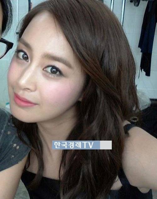 김태희는 고개를 살짝 옆으로 기울여 '얼짱 각도'로 사진을 찍었다. 김태희는 뚜렷한 이목구비와 투명한 피부를 과시하며 여신미모를 발산했다.
