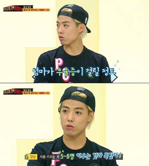 강남은 "엄마가 우울증이 걸릴 정도였다. 결국 이모들이랑 같이 키웠다. 1대4로 키우셨다"고 말을이었다.