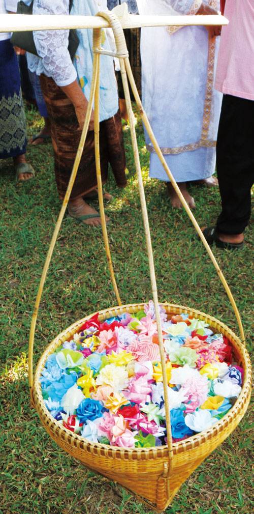 파삿을 완성하면 모두 동그랗게 둘러앉아 간단한 의식을 치른다. 등 뒤로 명주실을 크게 돌려 원을 만들고 짧은 기도를 한 뒤 등 뒤의 실을 무릎 앞으로 넘겨 가져온다. 나에게 있었던 나쁜 기운이 원을 따라 파삿으로 들어가게 하기 위한 것이다. 그리고 조심조심 양손으로 바삿을 들고 메콩강으로 간다.