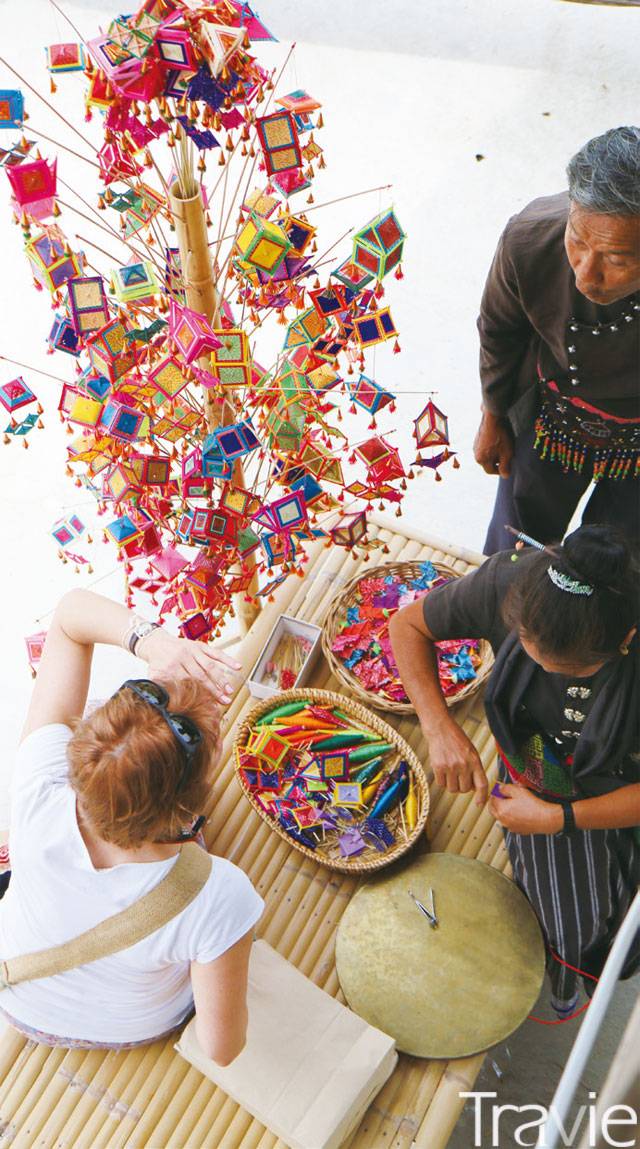 반나파낫 타이담 마을에서는 형형색색의 실을 꼬아 모빌을 만든다. 행운이 깃들길 바라는 마음에서 창가에 걸어둔다