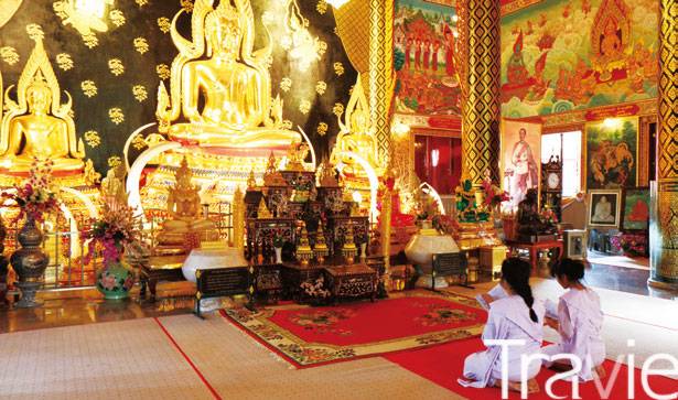 Temple왓 너라밋 위파타사나Wat Neramit Wipattasana대리석으로 지은 태국 방콕의 마블템플에서 모티브를 얻어 20여 년 전 만들어진 사원이다. 러이의 특산품인 분홍 대리석을 썼다. 치앙센 양식과 수코타이 양식이 절묘하게 어우러진 부처상은 은혜로운 미소와 함께 자비 넘치는 표정으로 완성됐다. 러이 지방 아티스트가 8년에 걸쳐 벽을 따라 그렸다는 벽화에서부터 중앙에 찬란한 황금빛으로 빛나는 부처상까지, 꼼꼼히 둘러볼수록 그 정성이 남다르다. 명상하는 사원이므로 여행자 또한 발소리와 목소리를 죽여 승려들을 방해하지 말아야 한다.