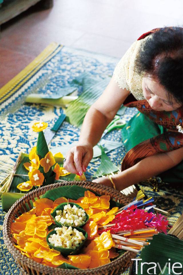 태국 전통 가옥들이 오밀조밀 들어선 치앙칸에 도착하자마자 골목길 안쪽의 작은 게스트하우스로 들어간다. 여행자들을 위한 숙소이기도 하지만 동시에 플로팅 오브젝트를 만드는 체험을 할 수 있는 곳이다. 태국어로 '파삿 로이 코Pasard Loy Kror'라고 불리는 플로팅 오브젝트는 태국인들이 나쁜 일이 생기면 행하는 의식에 사용되는 것이다. 파삿에 촛불을 켜고 강 위에 흘려 보내면서 나쁜 기운도 같이 흘려 보내는 것. 태국 사람들은 특별한 날이 아니어도 안 좋은 일이 있을 때면 파삿을 만들어 강으로 나선단다.