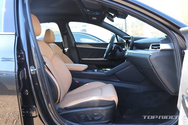 실내는 운전자 중심으로 구성된다. 신규 그래픽 사용자 인터페이스가 적용된 10.25인치 디스플레이를 비롯해, 터치 방식이 적용된 공조제어장치들이 운전자를 향해있다. 전자식 변속 다이얼이 적용된 주변의 드라이브모드, 열선 및 통풍시트 버튼은 스팅어와 유사하다.