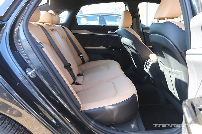 뒷좌석 공간은 차급을 뛰어넘는다. 2850mm의 휠베이스를 바탕으로 180cm 남성이 앉아도 무릎과 앞좌석 사이에 공간이 한 뼘 이상 남는다. 또한 패스트백 스타일 적용과 함께 날렵한 루프 실루엣의 낮아진 전고에도 불구하고 성인도 만족할 넉넉한 헤드룸을 제공한다.