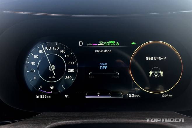 내비게이션과 연동된 고속도로 주행보조(HDA)는 스스로 곡선구간을 돌아나가며, 과속카메라 앞에서 속도를 줄인다. 또한 직선으로 이뤄진 구간에서는 최대 3분간 경고가 울리지 않았는데, 곡선구간과 터널이 많은 경우 15초 후 스티어링 휠을 잡으라는 경고가 울린다.