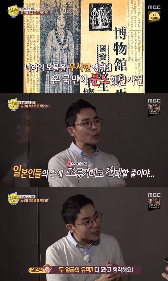 설민석은 "최초로 금관총, 서봉총이 얼굴을 드러냈던 때가 일제강점기였다. 신라의 역사가 우리 후손들에게 처음 빛을 들어냈을 땐 이미 후손들에게는 나라가 없었던 것이다"고 말해 시청자의 안타까움을 자아냈다.