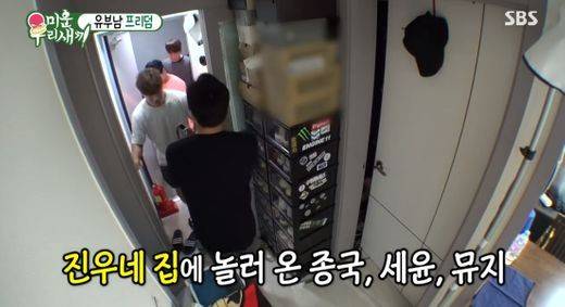 10일 방송된 SBS '미운우리새끼'에서 김종국은 유세윤, 뮤지와 함께 송진우의 집을 찾았다.