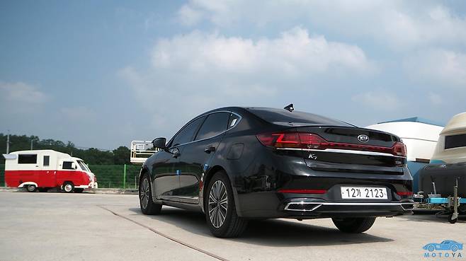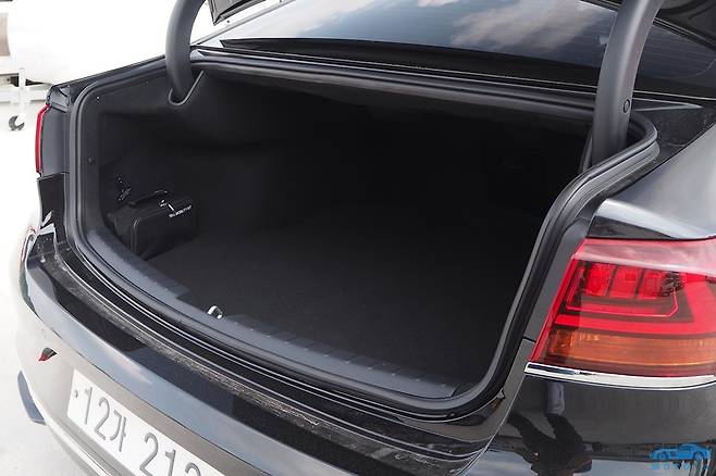 통상적으로 하이브리드 배터리는 뒷좌석의 등받이 뒤쪽에 위치하는 것이 보통이다. 승용차의 기본적인 구조 상, ‘세이프티 존(Safety Zone)’으로 설계되는 좌석 근처가 가장 안전하기 때문에 배터리를 보호하기 용이하며, 중량배분에서도 동시에 이득을 취할 수 있기 때문이다. 그러나 이렇게 되면 필연적으로 트렁크 공간을 양보해야 하는 부작용이 생긴다. 하지만 K7 하이브리드는 일반적인 가솔린 승용차에 준하는 공간을 제공한다. K7 하이브리드 모델은 하이브리드 배터리를 트렁크 하단의 스페어타이어 수납부에 설치한 덕분이다. 트렁크 용량은 전체적으로 넉넉한 편이다.