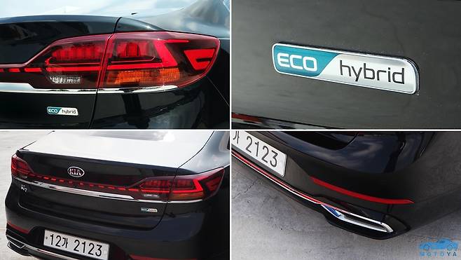뒷모습도 크게 변화했다. 기존의 분리되어 있었던 테일램프를 그랜저처럼 하나로 묶는 한 편, 형상에도 변경을 가해 더욱 감각적인 스타일로 일신했다. 테일램프 상단의 크롬 장식은 하단으로 옮겨 더 깔끔해진 분위기를 연출한다. 범퍼 하단에는 테일파이프와 비슷한 모양의 장식을 삽입하여 화려함을 더했다. 전후면부의 디자인에 크게 변경을 가하면서도 전반적인 완성도는 오히려 기존에 비해 더욱 뛰어나, 시각적인 만족감이 크다.