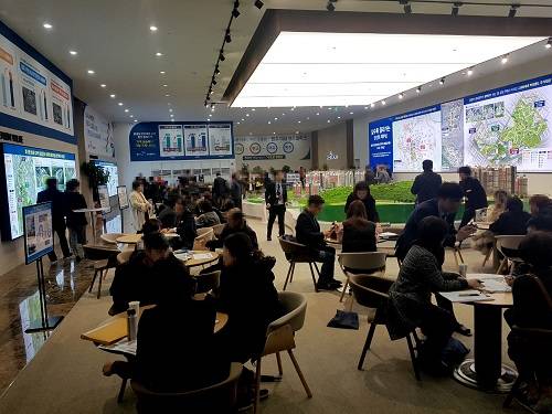 원주 더샵 센트럴파크 모델하우스가 몰려드는 방문자들로 떠들썩 하다.