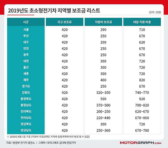 여기에 전기차 구매시 장점으로 적용하는 친환경차 보조금을 받을 수 있다. 올해 기준으로 정부 및 지자체 보조금을 합해 약 700만원을 지원받을 수 있다.