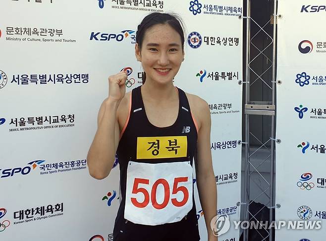 (서울=연합뉴스) 박재현 기자 = 8일 서울 송파구 잠실종합운동장에서 열린 제100회 전국체육대회 여자 일반부 3,000m 장애물 결승에서 10분9초87 통과로 우승한 조하림. 조하림의 결승 기록은 지난해 10월 제99회 전국체전에서 자신이 세운 10분11초00의 한국기록을 0.44초 단축한 한국기록이다. 2019.10.8