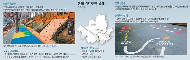 한국형사정책연구원 박성훈 박사는 “주민들이 해당 지역의 문제에 관심을 갖게 했다. 그 결과 송파구 마천2동과 성동구 용답동은 실제로 112신고 등이 줄어든 것으로 나타났다”면서도 “다만 서초구 반포1동은 1인 가구와 유동인구가 많아 주민 네트워크가 형성되지 못했고 결과적으로 생활안심디자인이 큰 효과를 내지 못했다”고 말했다. 그는 이어 “생활안심디자인의 핵심은 유지 관리다. 지속적으로 관리하지 않으면 관련 시설물이 오히려 도시 흉물로 바뀔 수도 있다”고 조언했다.