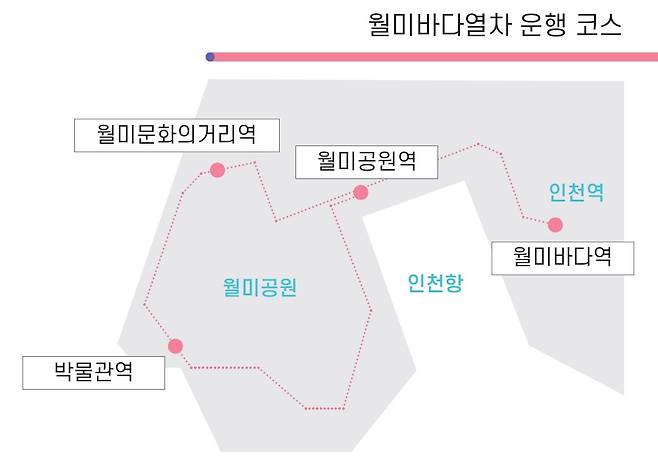 경인전철 시발역인 인천역(월미바다역)을 출발해 월미공원역, 월미문화의거리역, 박물관역, 다시 월미공원역을 지나 월미바다역까지 35분가량 운행하는 '월미바다열차'는 당일 1회 재승차가 가능하다. 관광객들은 월미문화의거리역이나 박물관역에서 내려 바다도 보고 공연을 보거나 전시관을 둘러보면서 시간을 보내다 10분 간격으로 운행하는 바다열차를 다시 타고 월미도 구석구석을 즐길 수 있다.