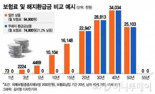 특히 종신보험의 경우 월 보험료가 비싸기 때문에 중도 해지 시 피해도 더 클 수 밖에 없다. 예를 들어 사망보험금 1억원짜리 무해지 종신보험을 10년납으로 가입하고 매월 30만원의 보험료를 낸다고 할 때 가입 후 6년이 지난 시점에 경제적인 문제가 생겨 중도 해지하면 보험료를 2160만원 내고도 한 푼도 돌려받지 못한다. 이 때문에 해외 주요국도 현재 종신보험 무해지 상품은 팔지 않는 것으로 파악된다.