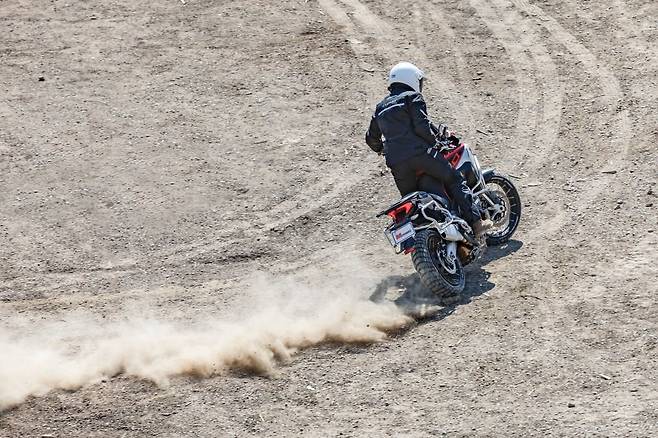 전자 장치의 반응도 뛰어났다. 감속이 충분히 이루어지다가 프런트가 그립을 잃으면 순간적으로 ABS가 개입한다. ABS 모드 1에서는 프런트에만 ABS를 적용할 수 있다는 점도 다운힐에서 유리했다. 리어 휠을 잠가 미끄러트리면 진행 방향을 빠르게 바꿀 수 있기 때문이다. 내친김에 200kg이 훌쩍 넘는 듀얼퍼퍼스지만 가볍게 점프도 시도해 보았다. 두툼한 토크로 가볍게 뛰어오르고 착지할 때도 스로틀을 조금만 열어주면 충격을 잘 받아내는 편이다. 전체적으로 거대한 덩치에 비해 사뿐한 움직임이 인상적이다. 첫인상은 부담스럽지만 실제로 오프로드를 달려보면 의외로 다루기 쉬움에 놀라게 된다. 특히 세분화된 전자 장비의 세팅으로 라이더의 역량에 맞춰 얼마든지 성격을 바꿀 수 있다는 점이 마음에 든다.