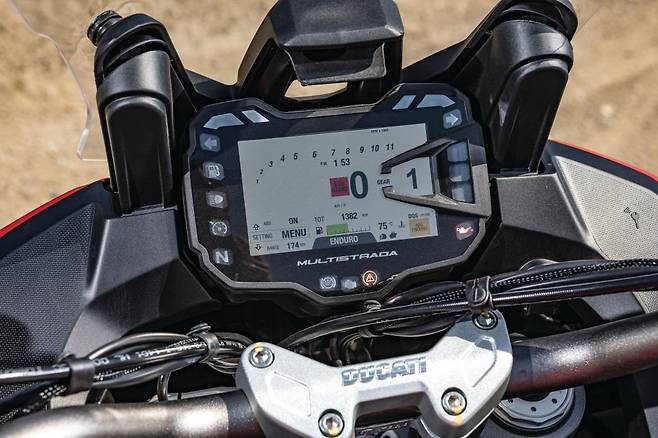 멀티스트라다가 슈퍼바이크의 심장을 다듬어 사용했던 것에서 이제는 그 이상의 강력함을 지닌 엔진으로 진화했다. 높은 수준의 전자 장치를 결합시켜 강력하지만 라이더가 다루기 쉽고 즐길 수 있도록 만든다. 반면 전자 장치를 느슨하게 조절하거나 아예 꺼버리면 감당하기 벅찰 만큼 강력해지고 그 순간의 압도되는 느낌을 멀티스트라다에서도 똑같이 느낄 수 있다. 분명히 투어러의 성향의 포지션이지만 심장은 두카티 스포츠 바이크의 감성 그대로다.