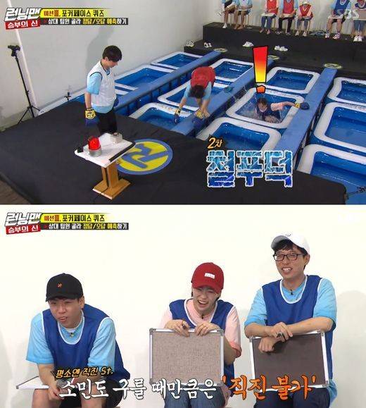 버저를 누르기 위해선 앞구르기로 풀장 사이를 건너야 하는 바. 전소민이 3연속으로 물에 빠지는 수모를 겪으면 촬영장은 웃음바다가 됐다. 유재석은 “소민이 멋지다”라며 박수를 보냈다.