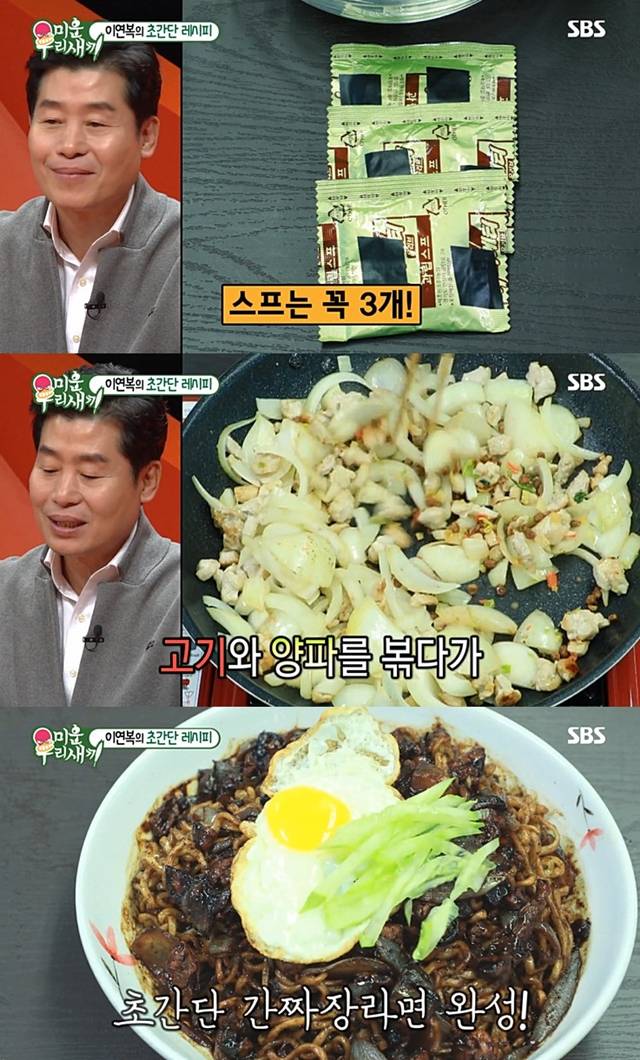 끝으로 "고기와 양파를 볶다가 물 조금 뿌려주고 라면 끓이면 끝난다. 그러면 간짜장이 되는 거다. 진짜 간단하게 간짜장이 완성된다”고 덧붙였다.