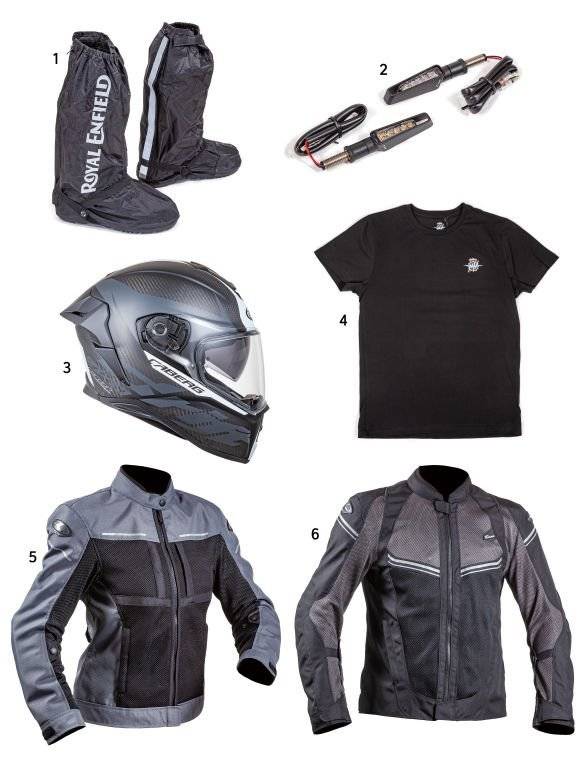 1. ROYAL ENFIELD 부츠 커버 변덕스러운 여름 우중 라이딩을 대비한 부츠 커버. 뒤쪽의 지퍼와 벨크로로 쉽게 신고 벗을 수 있고 리플렉터를 덧댔다. 밑창은 미끄럼을 방지할 수 있도록 설계되어있으며 부츠와 커버가 단단히 고정될 수 있도록 발등과 발뒤꿈치를 잡아주는 스트랩이 마련되어있다.