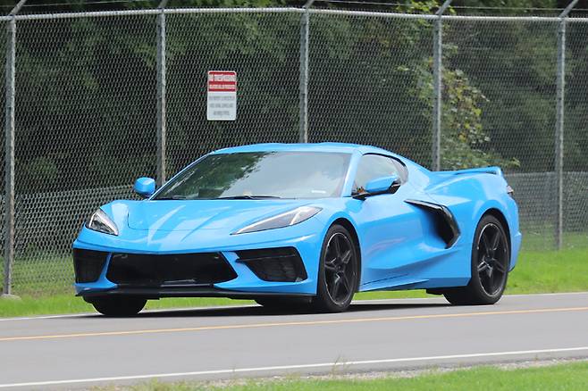 쉐보레 콜벳 스팅레이 레피드 블루 모델이 주행 테스트 중 카메라에 포착됐다. 미국 미시간주 디트로이트에 있는 GM의 밀포드 프루빙그라운드에서 카메라에 잡힌 모델은 새로운 색상을 완벽하게 부여 준다. 파란색 컬러는 이전에 소개됐던 엘크하트 레이크 블루 메탈릭 모다 훨씬 더 밝다.