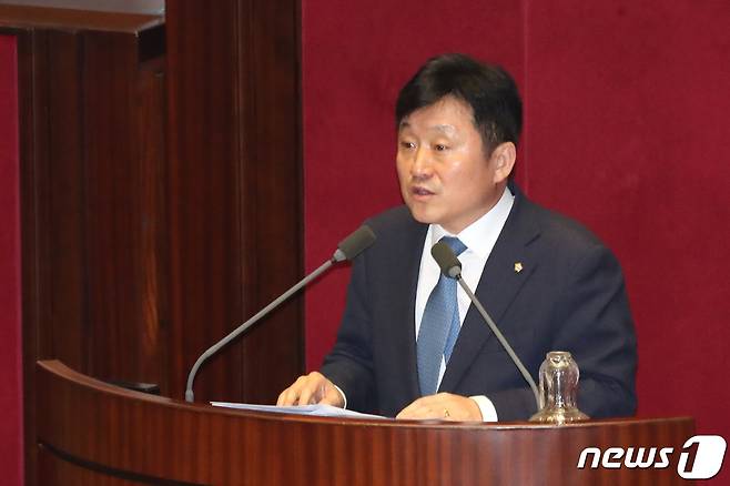 (서울=뉴스1) 임세영 기자 = 최인호 더불어민주당 의원이 24일 오전 서울 여의도 국회에서 열린 제372회 국회 (임시회) 제1차 본회의에서 공직선거법 일부개정법률안에 대한 무제한 토론(필리버스터)을 하고 있다. 2019.12.24/뉴스1