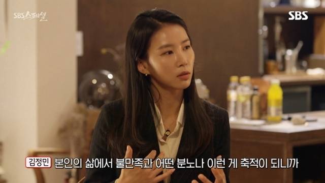 그러면서 김정민은 "어떤 악플은 어떻게 사람이 사람에게 이런 말을 하나 싶은 것들이 있다"며 "이 사람이 나를 사람으로 생각하지 않고 있구나. 그냥 즐겁게 돈을 버는 연예인이고 그걸 누리면서 조금이라도 잘못한 것 같으면 욕 먹어야 한다고 생각하는 것 같다"고 털어놨다. (사진=SBS 'SBS 스페셜' 캡처)